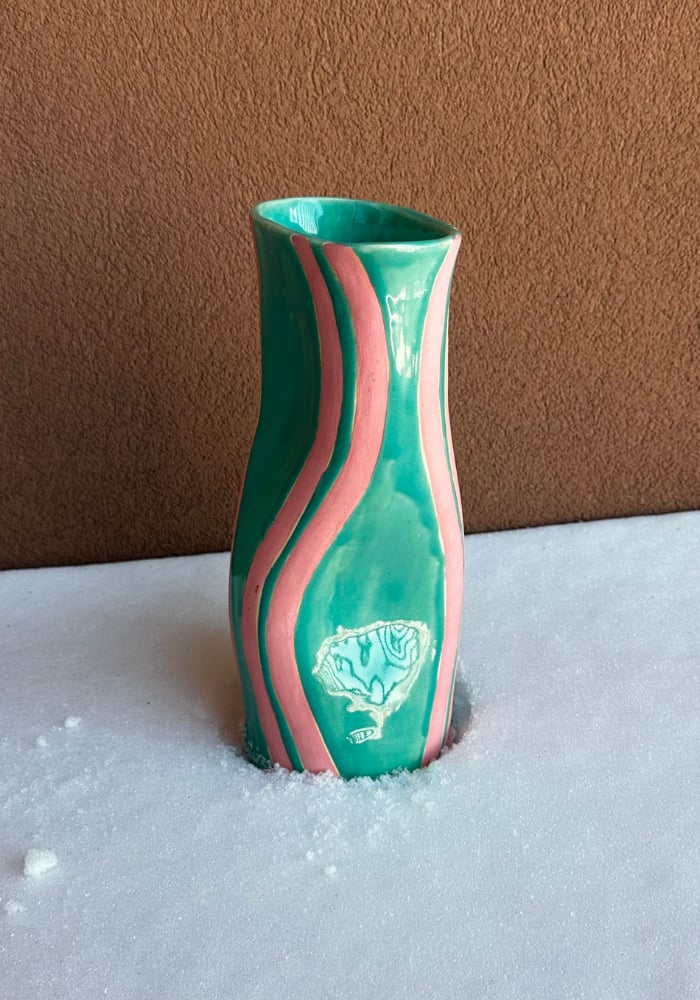 Dancing Vase in teal and pink